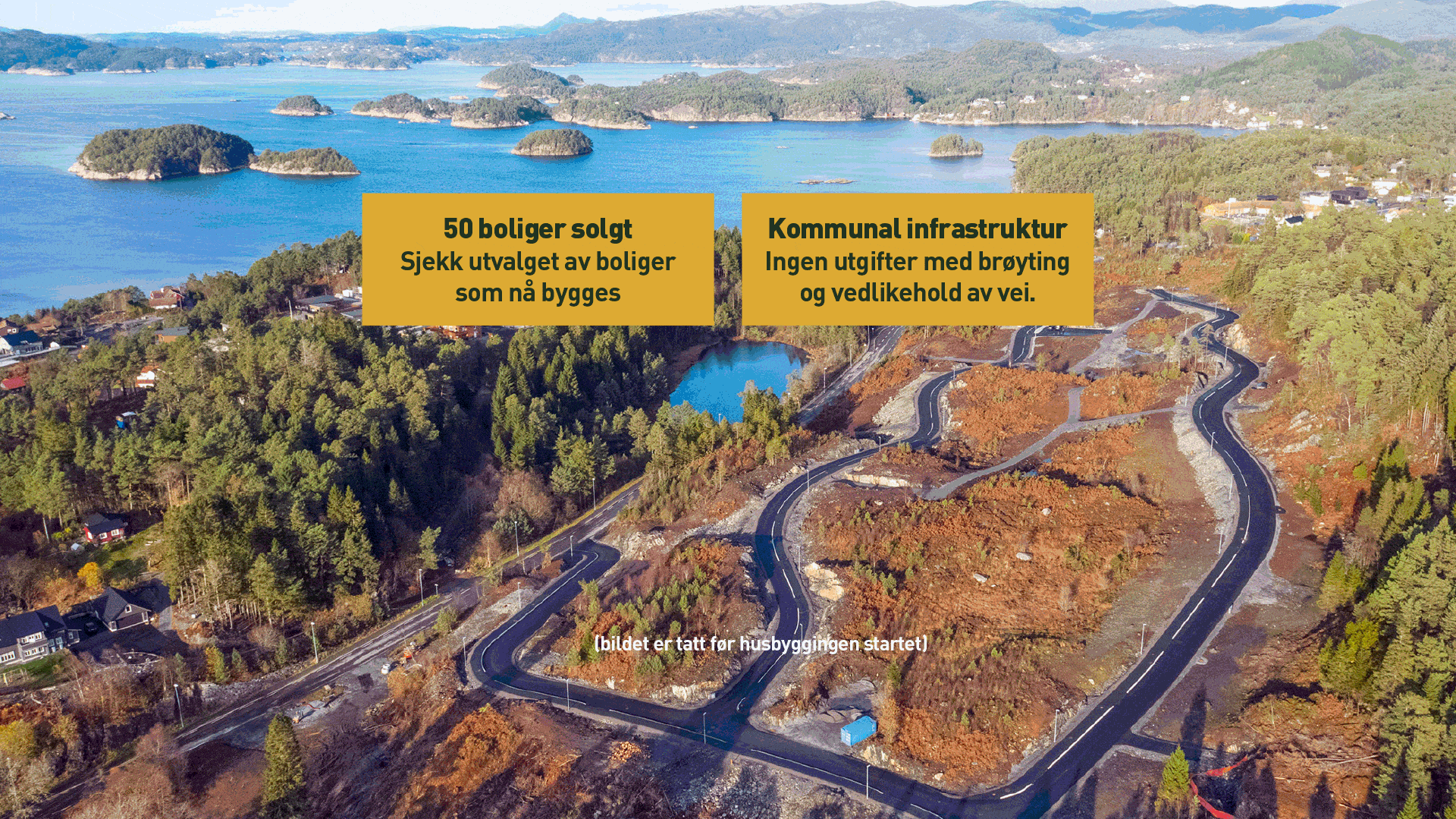 Tomtene ligger praktfullt til i herlig, frisk natur ut mot Bjørnefjorden og Korsfjorden, kun 200m fra skole/barnehage.